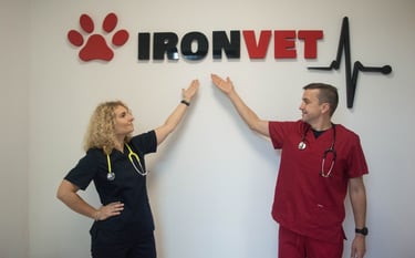Gabinet weterynaryjny IRONVET utworzony został przez lek. wet. Małgorzatę Kozak i lek. wet. Wojciecha Szylkina.