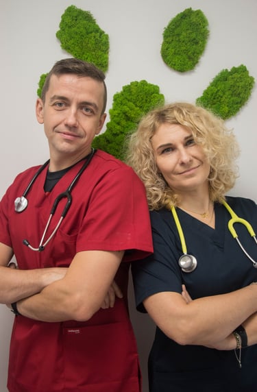 "Kochamy naszą pracę. Przez ostatnie kilkanaście lat diagnozowaliśmy i leczyliśmy Wasze zwierzęta i chcemy to robić nadal. Weterynaria jest naszą pasją, naszym życiem. Czerpiemy radość z kontaktu z naszymi pacjentami i ich właścicielami. Jesteśmy z nimi w dobrych jak i tych trudnych chwilach. Cały czas idziemy do przodu, szkolimy się, uczestniczymy w konferencjach. Dzielimy się również swoją wiedzą pisząc naukowe artykuły. Wielu z Państwa nam zaufało i mamy nadzieję, że tak pozostanie nadal."